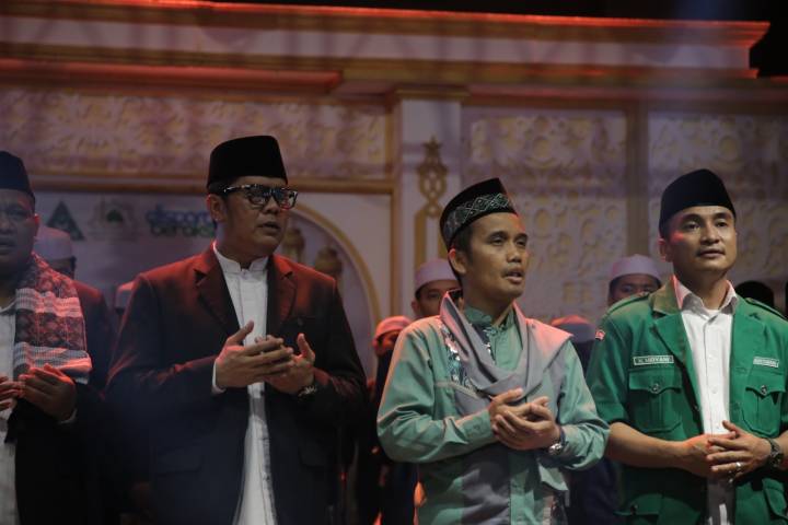 Doa bersama Wakil Wali Kota Tangerang Maryono Hasan, dipandu Ustadz Maulana, beserta para Kepala OPD, dalam rangkaian Festival Maulid Nusantara 2, di Taman Elektrik, Kota Tangerang, Provinsi Banten, Selasa (23/9/25).
