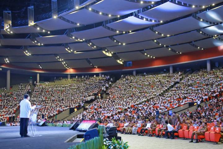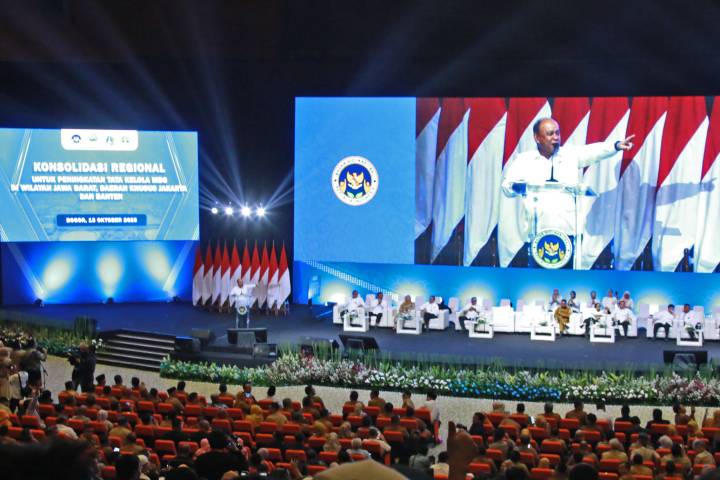 Kepala Badan Gizi Nasional (BGN) menyampaikan arahannya dalam Rapat Konsolidasi Regional untuk Peningkatan Tata Kelola Makan Bergizi Gratis (MBG) di Wilayah Jawa Barat, DKI Jakarta, dan Banten yang digelar di SICC, Kabupaten Bogor, Senin (13/10/2025).