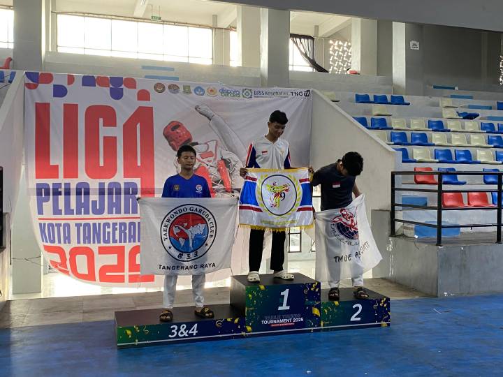 Foto para pemenang Liga Pelajar Taekwondo Vol. 4 yang dilaksanakan di GOR Gondrong, Kecamatan Cipondoh, Kota Tangerang, Banten
