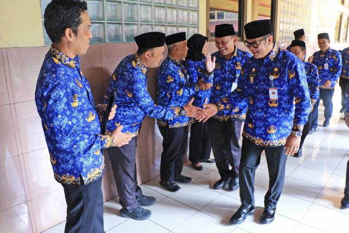 Wakil Wali Kota Tangerang H. Maryono Hasan menyapa para ASN usai Apel Hari Kesadaran Nasional di Kawasan Puspem Kota Tangerang, Senin, (17/11/2025)