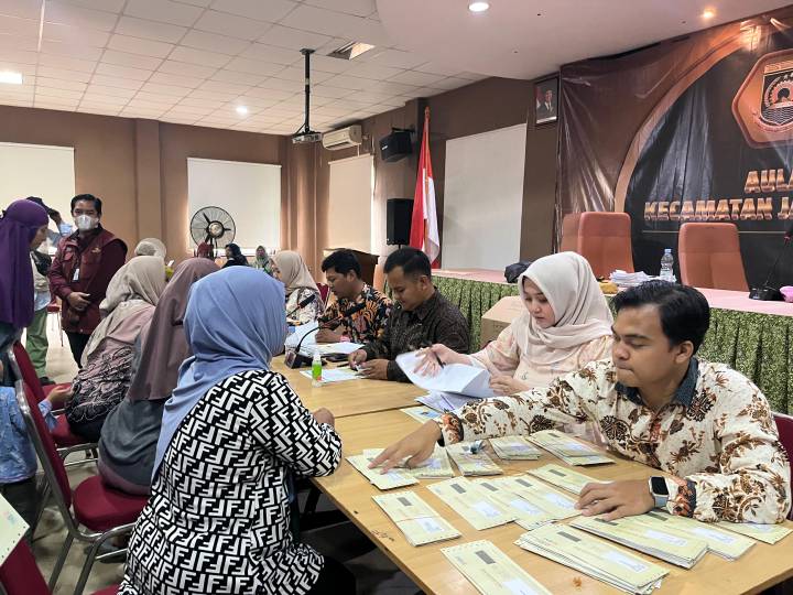Kepala Seksi Kemasyarakatan Kecamatan Jatiuwung Samsu Rais sedang memantau langsung kegiatan Pemberian Kartu Keluarga Sejahtera (KKS) di Kecamatan Jatiuwung, Kota Tangerang.