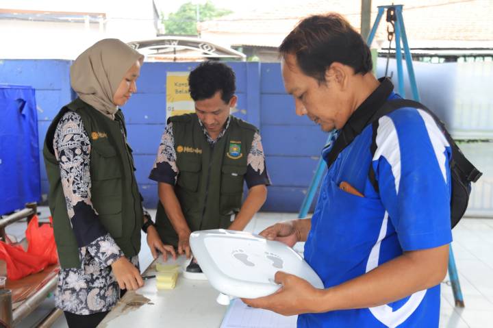 Petugas sedang melakukan tera ulang alat timbang digital puskesmas di Kecamatan Batuceper, Kota Tangerang, Banten, Kamis (16/10/25).
