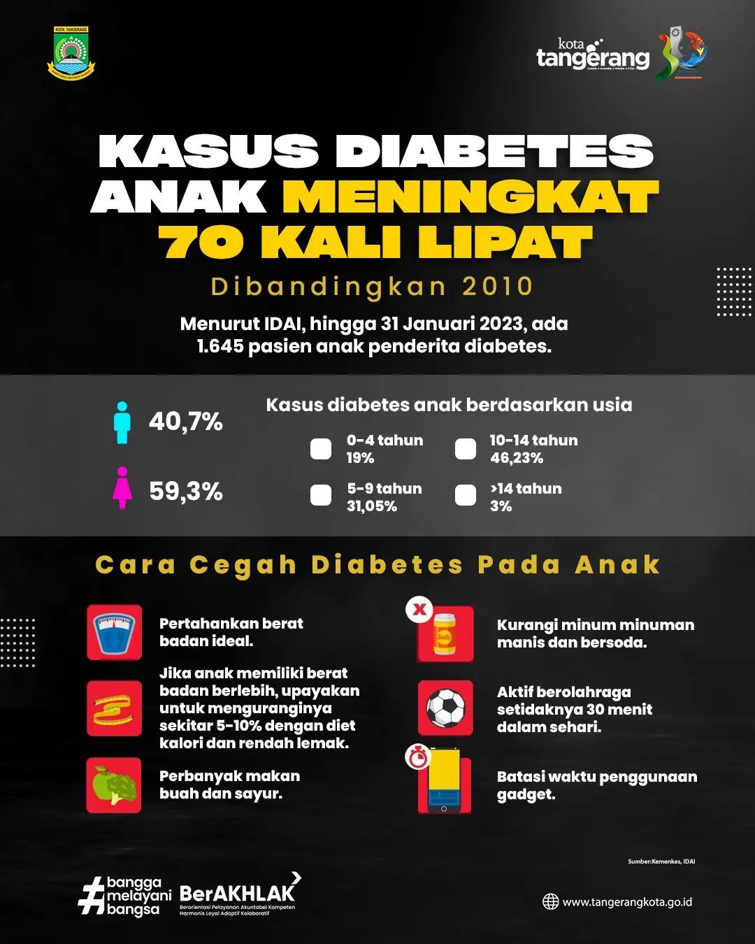 Kasus diabetes pada anak meningkat 70 kali lipat pada Januari 2023. Jumlah tersebut dibandingkan dengan jumlah diabetes anak tahun 2010 atau 0,028 per 100.000 anak...