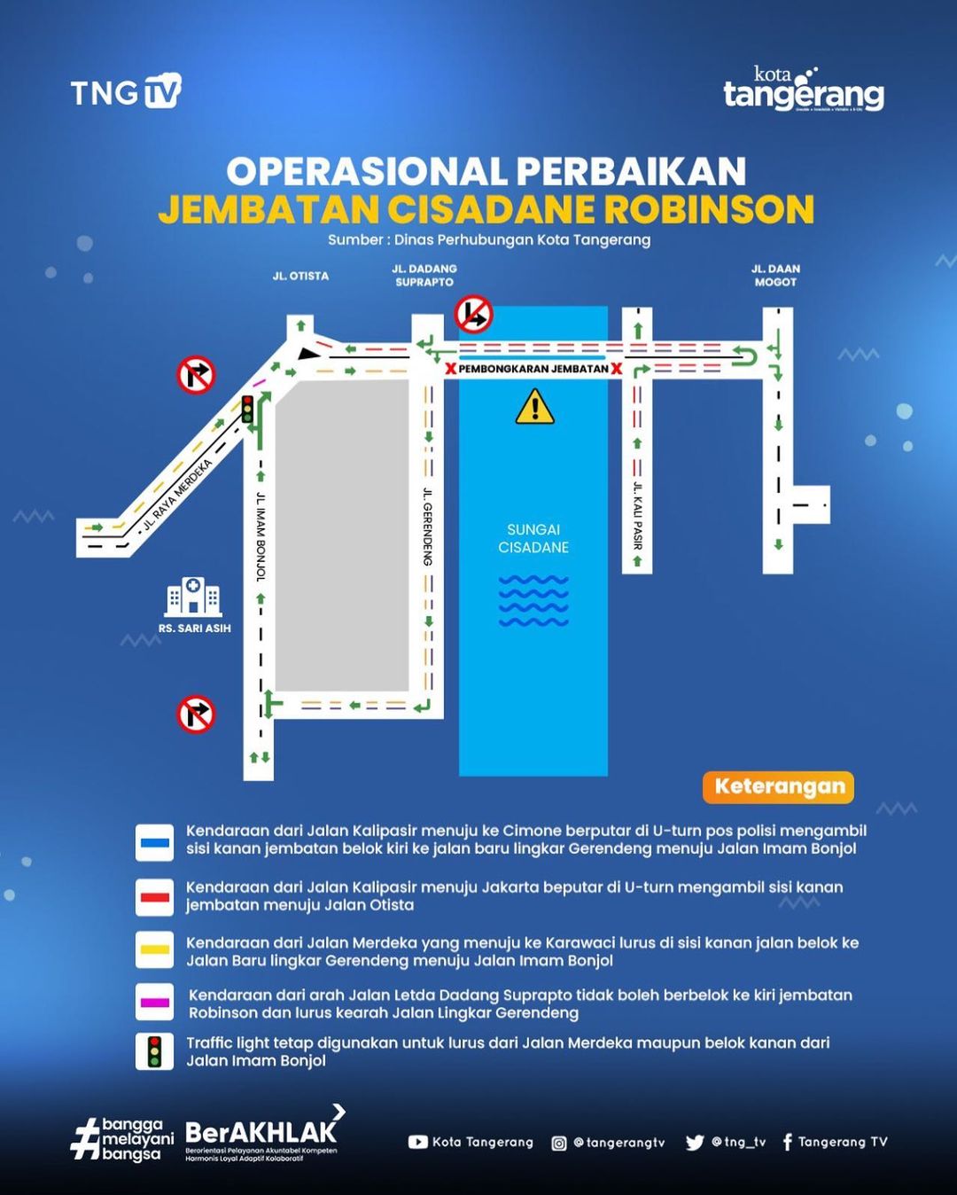 ehubungan dengan adanya perbaikan Jembatan Cisadane Robinson, @dishub_kotatangerang akan memberlakukan manajemen dan rekayasa lalu lintas hasil rekomendasi Analisa Dampak...