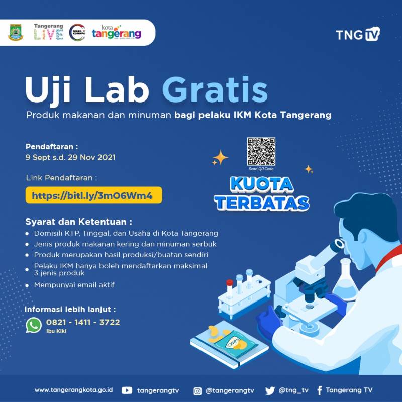 Sob Dinas Perindustrian, Perdagangan, Koperasi, Usaha kecil dan Menengah Kota Tangerang kembali mengadakan kegiatan fasilitas UJI LAB GRATIS untuk produk...