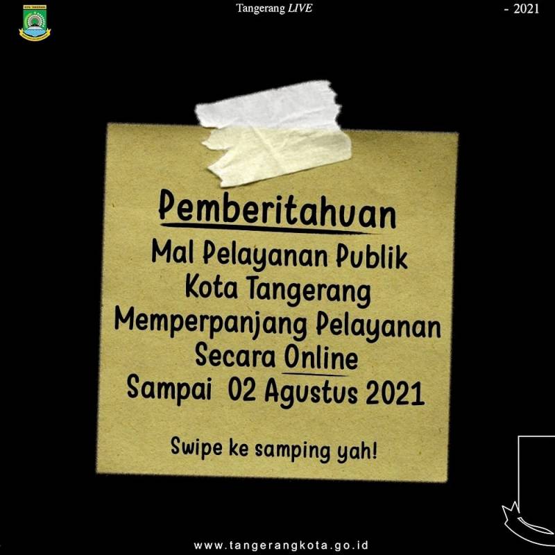 Dalam rangka pencegahan penyebaran Covid-19, pelayanan di Mal Pelayanan Publik, dialihkan secara online sampai dengan 02 Agustus 2021.