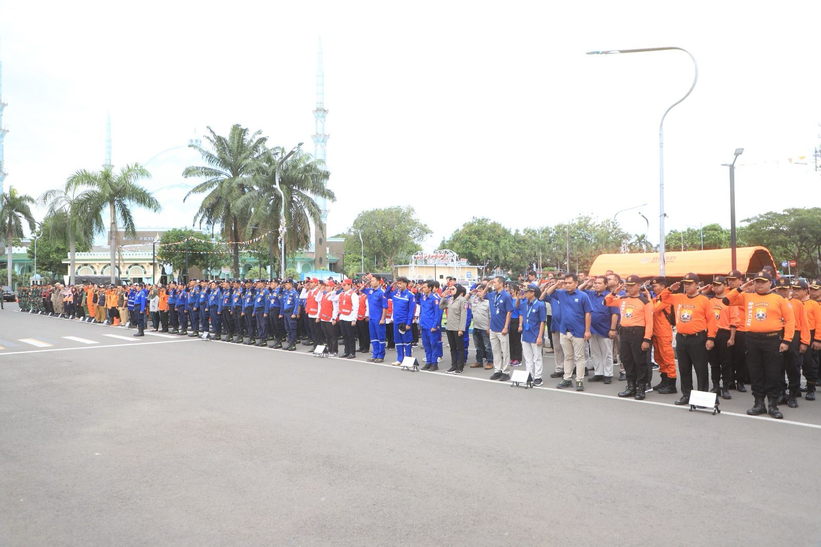 Antisipasi musim penghujan, Pemerintah Kota (Pemkot) Tangerang menggelar Apel Siaga Bencana 2024 di Puspem Kota Tangerang, Selasa (23/1/24). Apel digelar dalam upaya...