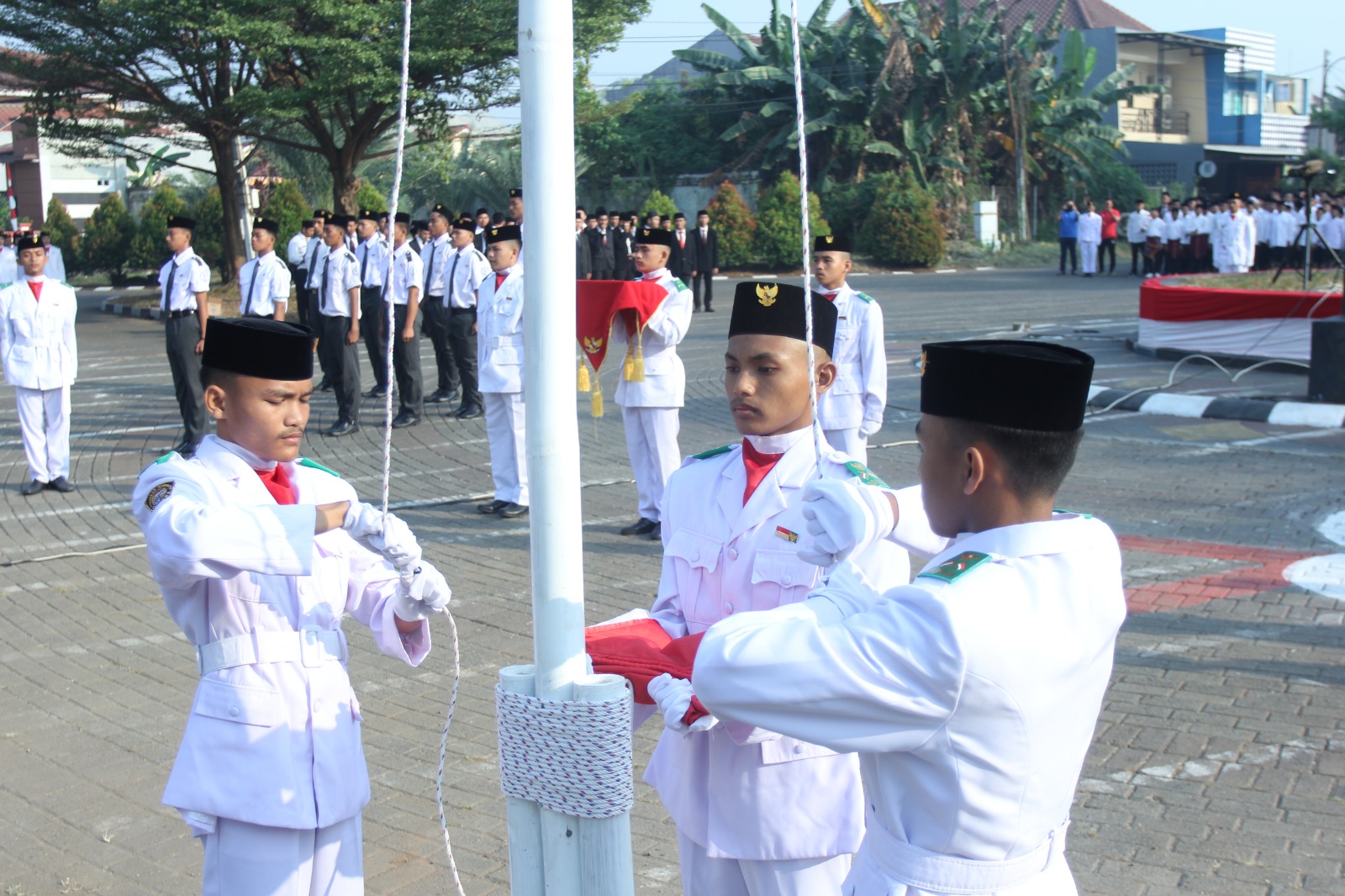 Ratusan warga Taman Royal 2, RW16 Kelurahan Poris Plawad Indah, Kecamatan Cipondoh, Kota Tangerang melaksanakan upacara kemerdekaan Republik Indonesia bersama dengan...