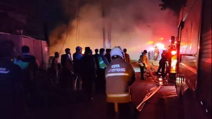 Kebakaran hebat menghanguskan sembilan lapak barang bekas di Jalan Raya Perancis, Kecamatan Benda, Kota Tangerang, Rabu (25/02/26).
