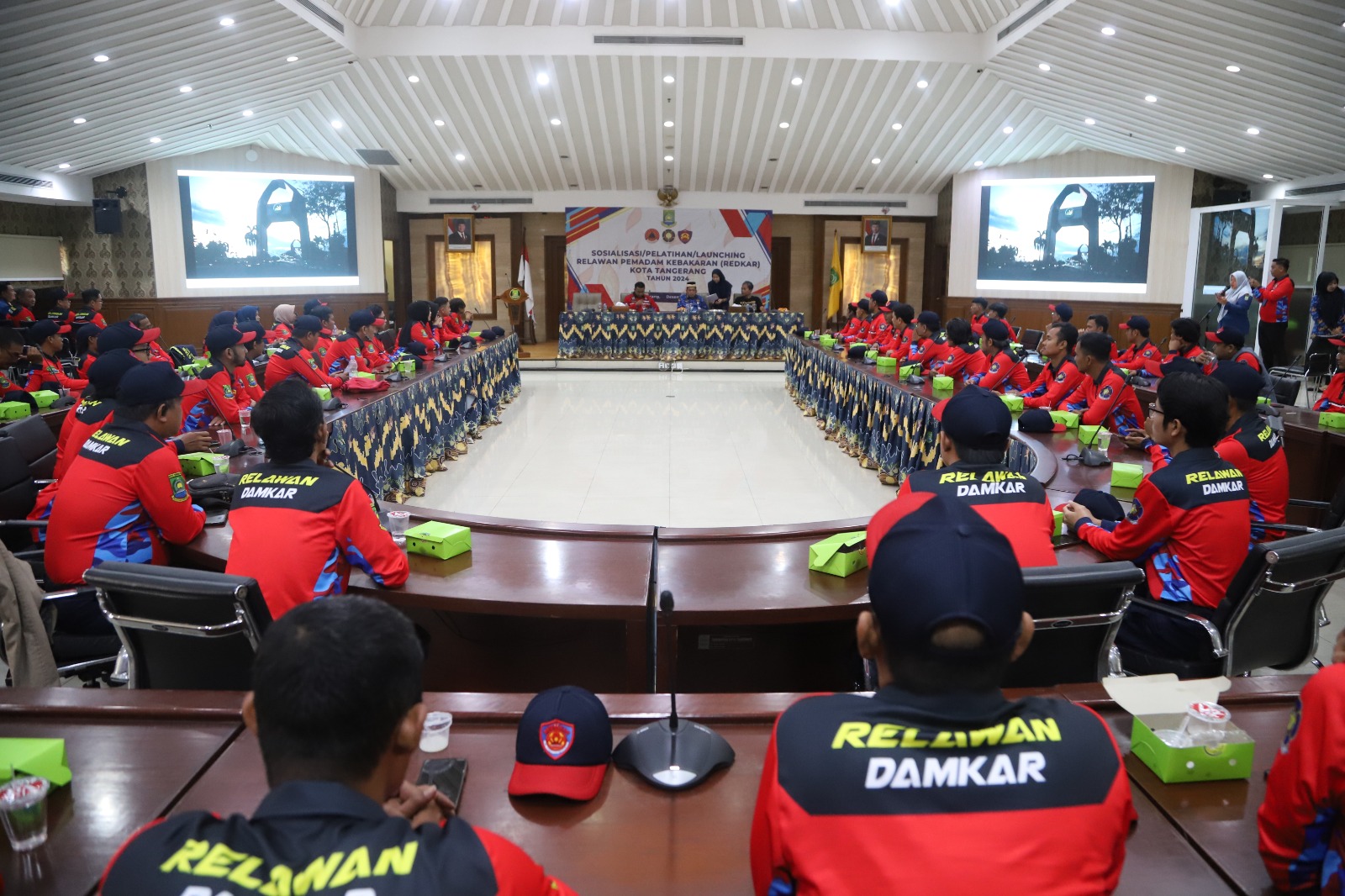 Sebanyak 117 Relawan Pemadam Kebakaran (Redkar) Kota Tangerang dikukuhkan Penjabat (Pj) Wali Kota Tangerang Dr. Nurdin, di Ruang Akhlakul Karimah, Puspem...