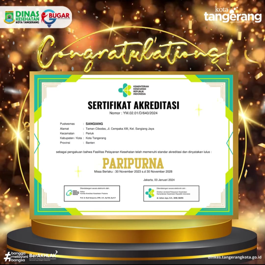Kualitas fasilitas kesehatan di Kota Tangerang kembali mendapatkan pengakuan yang mengagumkan. Terbaru, Kementerian Kesehatan Republik Indonesia (Kemenkes RI) melalui Lembaga...
