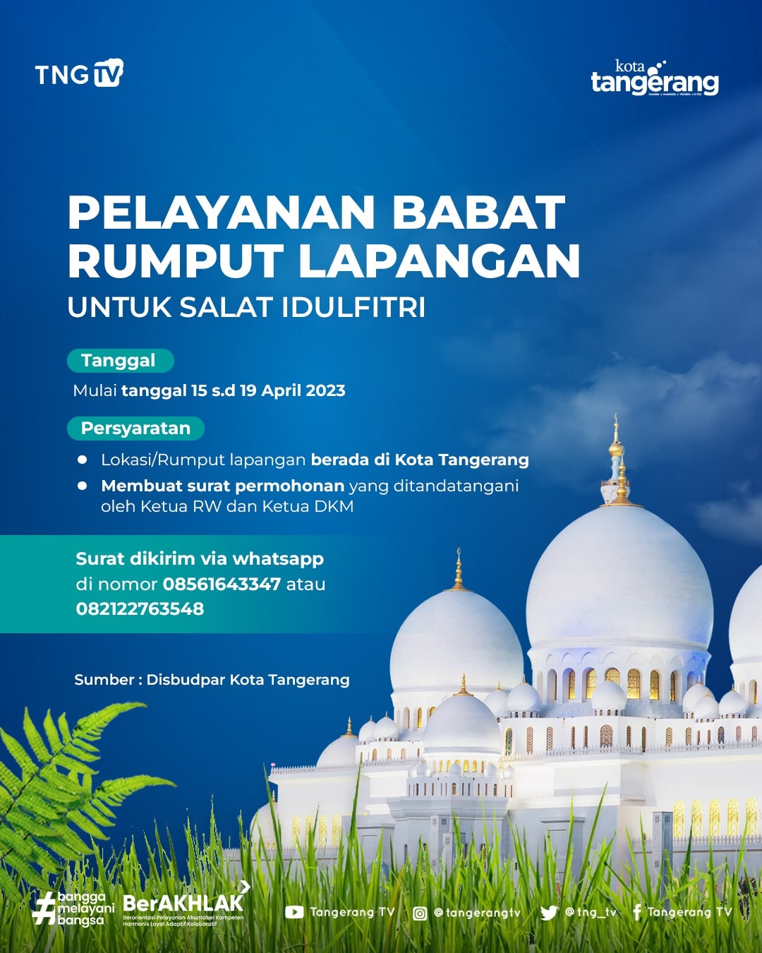 Dalam rangka persiapan salat Idul Fitri 1444 Hijriah. Pemerintah Kota (Pemkot) Tangerang melalui Dinas Kebudayaan dan Pariwisata (Disbudpar) berupaya memberikan pelayanan...