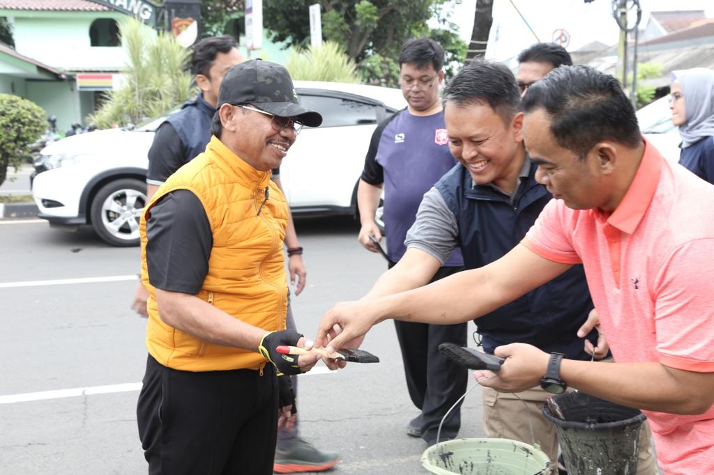 Pemerintah Kota (Pemkot) Tangerang menggelar kegiatan pengecatan kanstin yang merupakan batas antara badan jalan dengan trotoar, di puluhan ruas jalan...