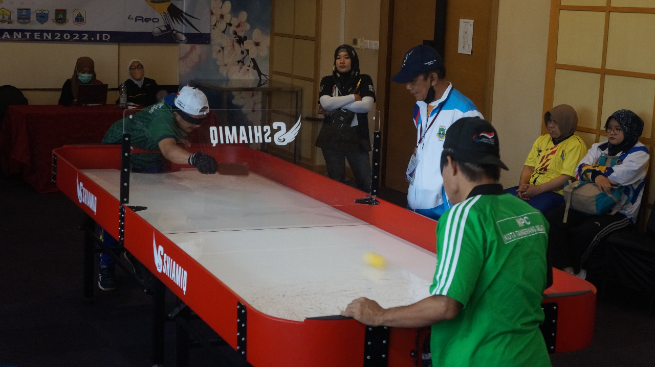 Partai final ganda putra tenis meja tuna netra pada Peparprov IV Banten mempertemukan Kota Tangerang dengan Kabupaten Tangerang....