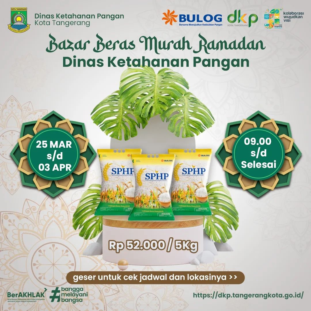 Pemerintah Kota (Pemkot) Tangerang melalui Dinas Ketahanan Pangan (DKP) bekerja sama dengan BULOG Tangerang, akan kembali mengadakan Bazar Beras Murah...