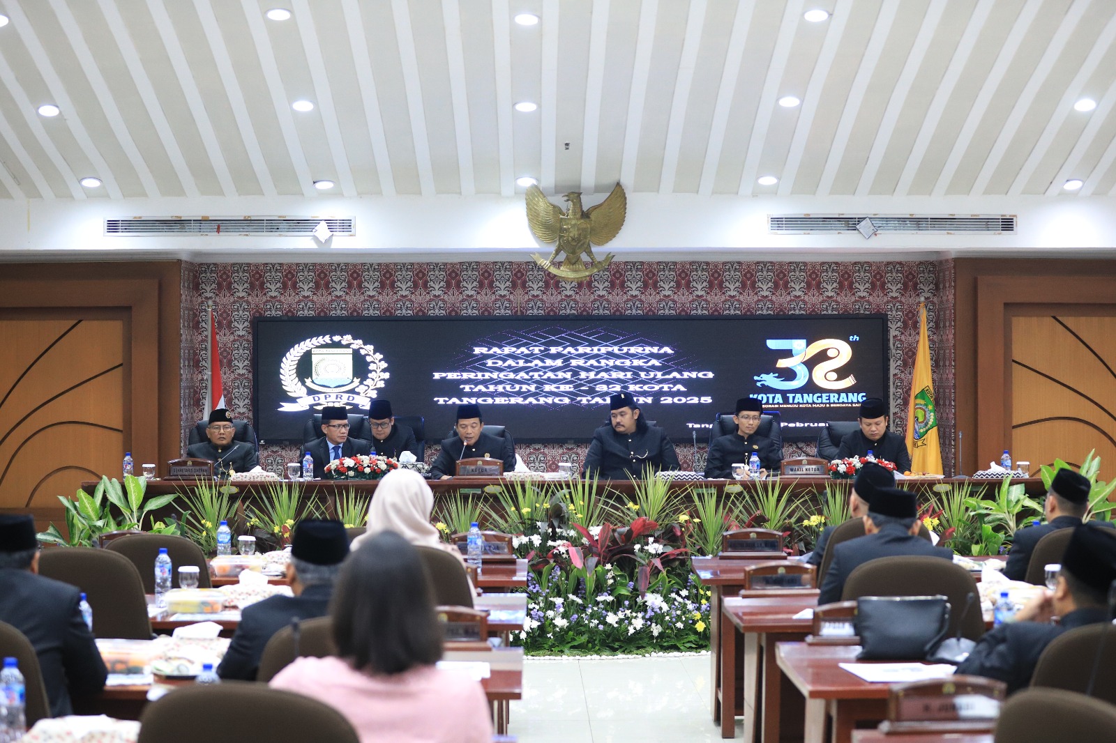 DPRD Kota Tangerang menggelar Rapat Paripurna dalam rangka HUT ke-32 Kota Tangerang di Ruang Paripurna, Puspem Kota Tangerang, Jumat (28/2/25). Rapat...