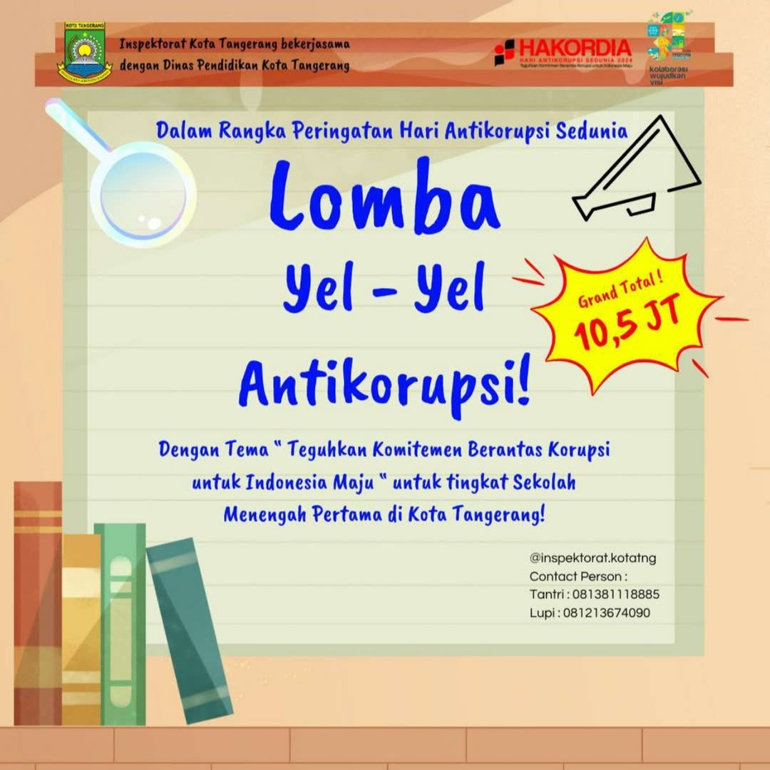 Dalam memperingati Hari Antikorupsi Sedunia (Hakordia) tahun 2024, Pemerintah Kota (Pemkot) Tangerang melalui Inspektorat menggelar lomba fotografi dan yel-yel secara gratis...