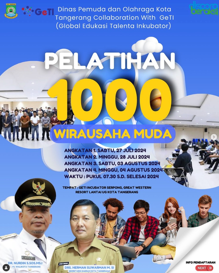 Memaksimalkan potensi anak-anak muda di Kota Tangerang khususnya wirausahawan muda, Pemerintah Kota (Pemkot) Tangerang melalui Dinas Pemuda dan Olahraga (Dispora...
