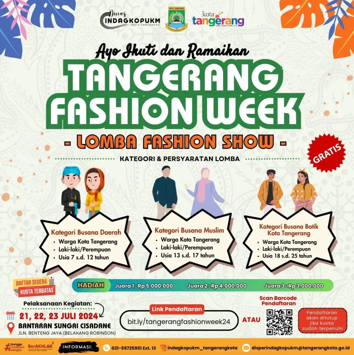 Pemerintah Kota (Pemkot) Tangerang melalui Dinas Perindustrian, Perdagangan, Koperasi dan UKM Kota Tangerang akan menggelar Tangerang Fashion Week 2024, pada 21-...