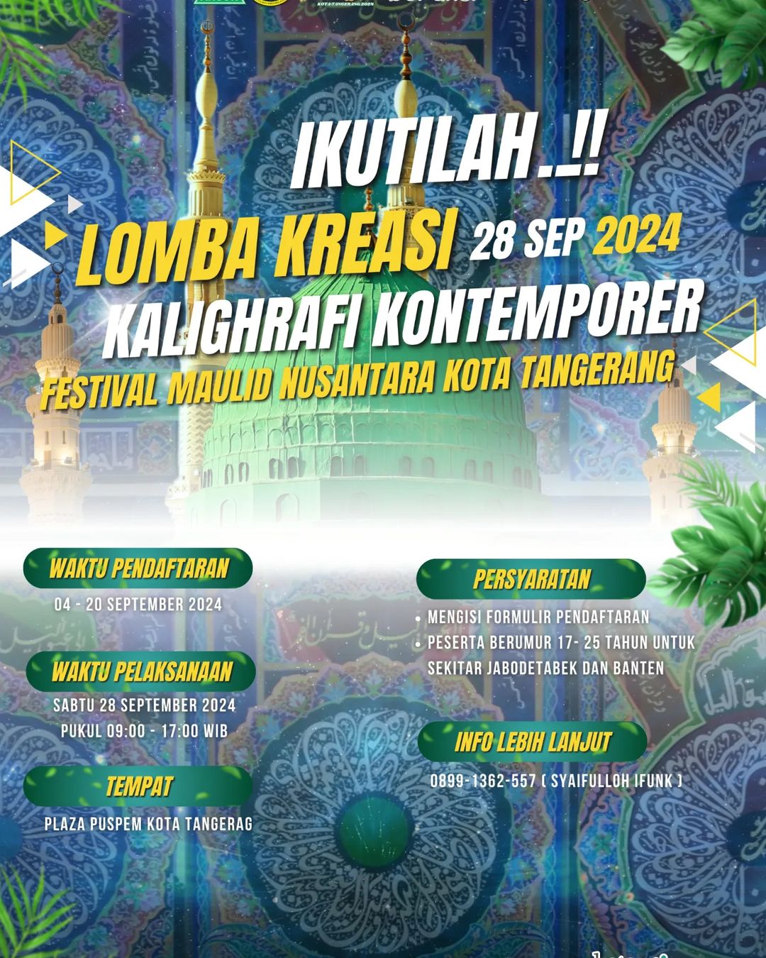 Pemerintah Kota Tangerang melalui Dinas Pemuda dan Olahraga (Dispora) menyambut Maulid Nabi Muhammad SAW, dengan menggelar Festival Maulid Nusantara Kota...