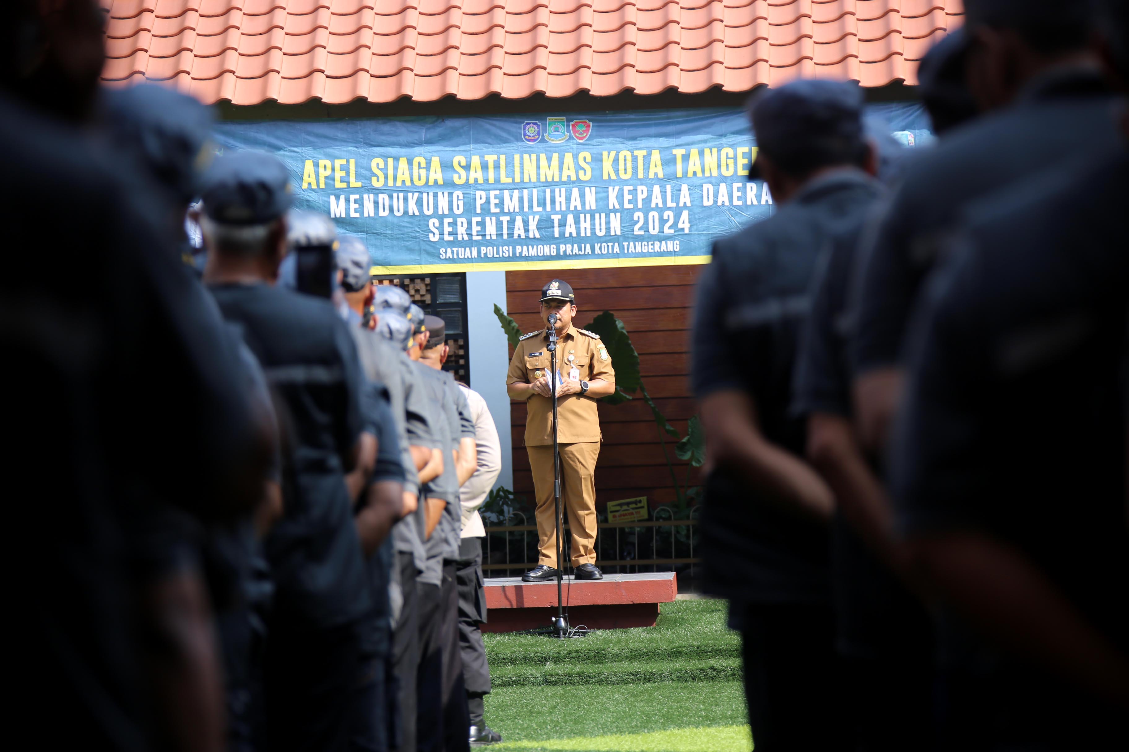 Penjabat (Pj) Wali Kota Tangerang, Dr. Nurdin, memimpin Apel Siaga Satuan Perlindungan Masyarakat (Satlinmas) sebagai bentuk kesiapan dalam mendukung pelaksanaan...