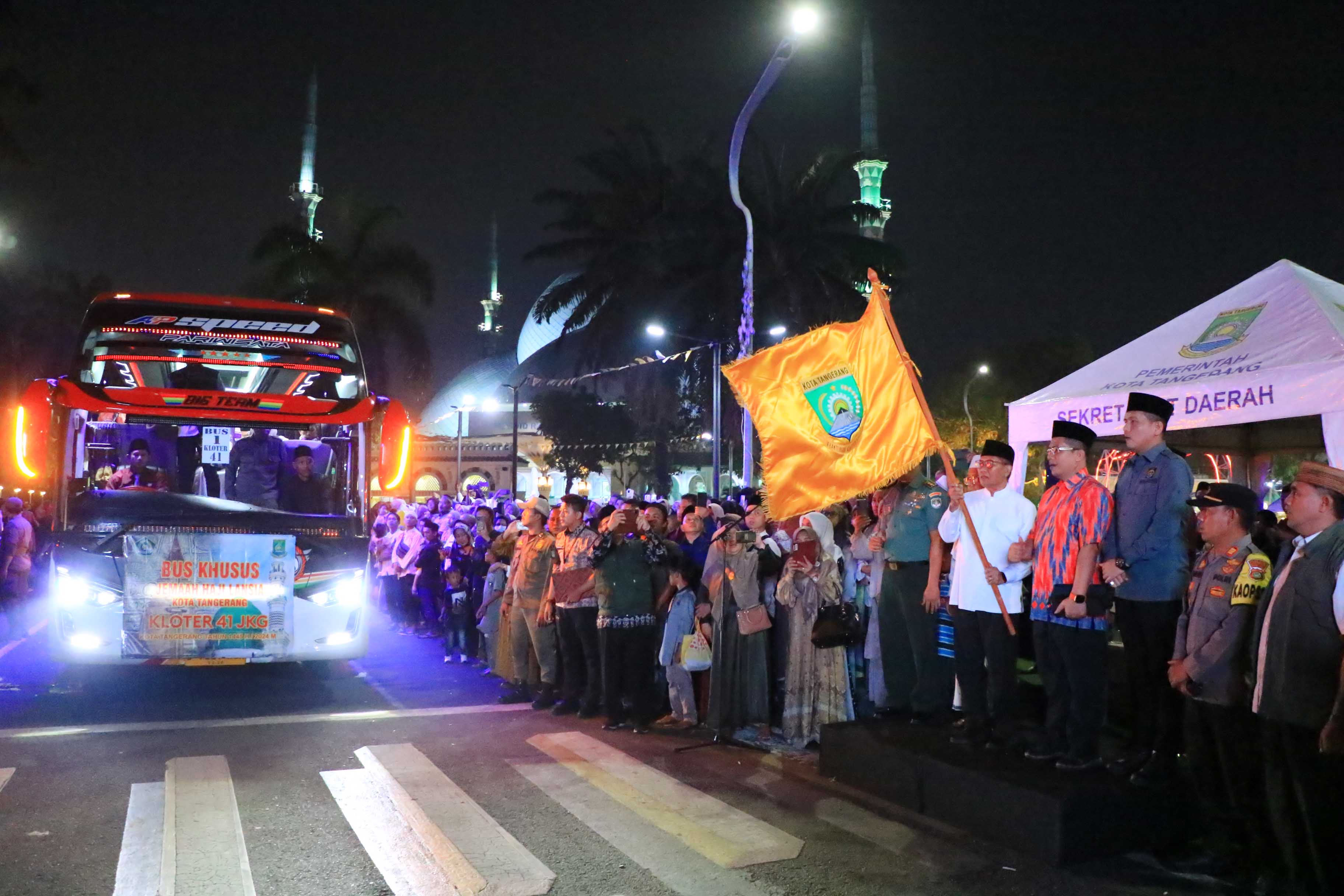 Sekretaris Daerah (Sekda) Kota Tangerang, Herman Suwarman, melepas keberangkatan Rombongan Jemaah Haji Reguler Kota Tangerang Kloter 41-JKG/Kota Tangerang, Provinsi...