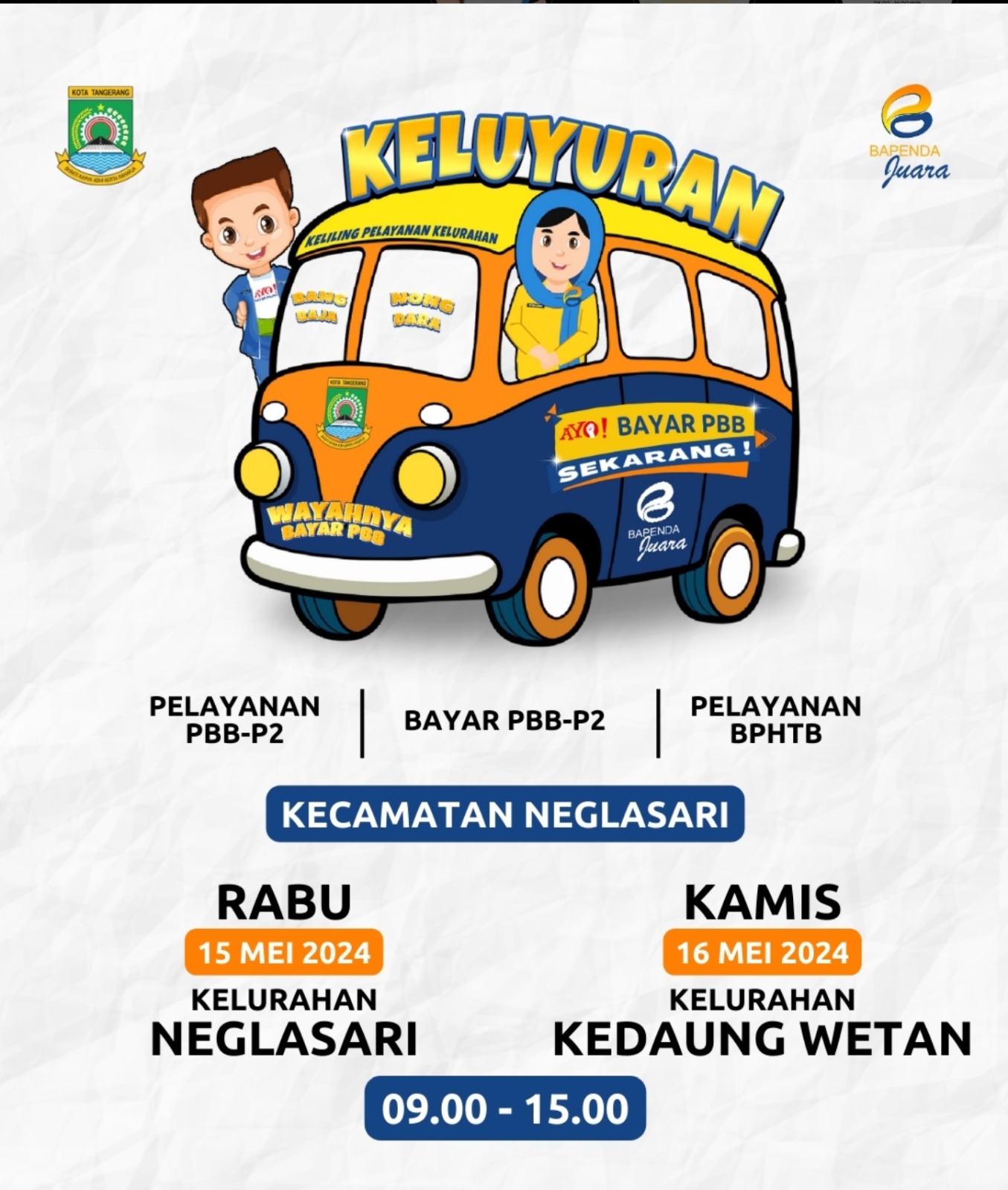 Memudahkan dan mendekatkan pelayanan kepada masyarakat, program Pemerintah Kota (Pemkot) Tangerang melalui Badan Pendapatan Daerah (Bapenda) salah satunya adalah Bang...