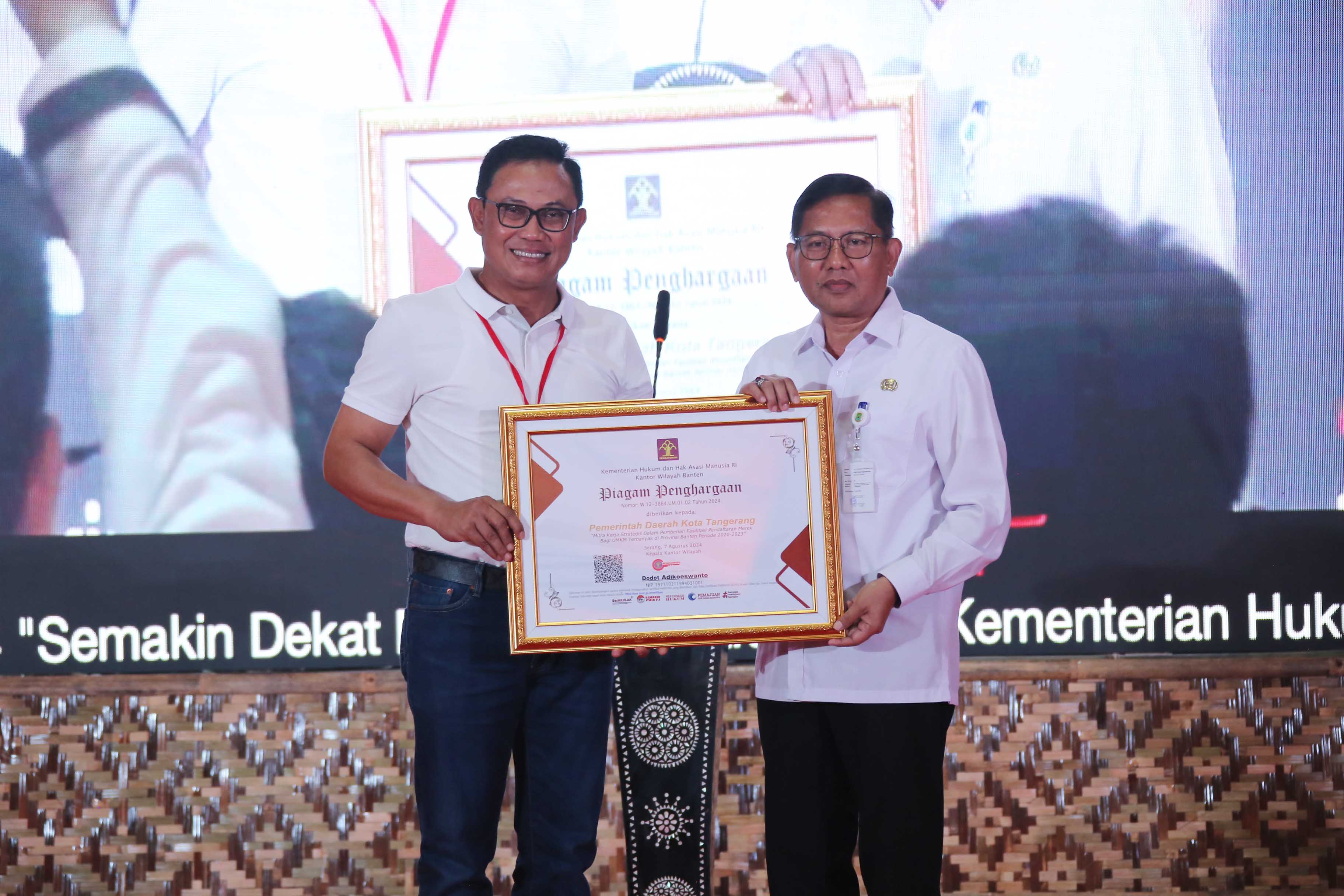 Pemerintah Kota (Pemkot) Tangerang menerima penghargaan dari Kementerian Hukum dan Hak Asasi Manusia RI Kantor Wilayah Banten, atas kontribusinya sebagai...