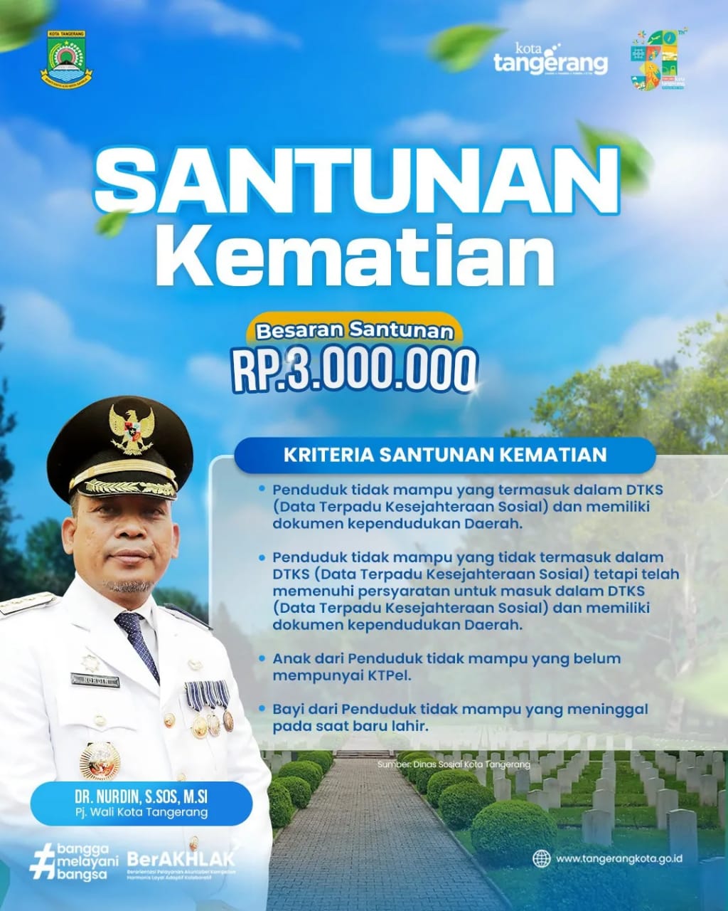 Pemerintah Kota (Pemkot) Tangerang melalui Dinas Sosial (Dinsos) terus menyosialisasikan adanya program santunan kematian. Santunan yang diberikan kepada masyarakat Kota...