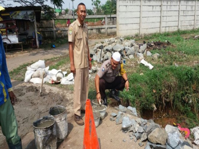 Dalam kegiatan sambangnya, BRIPKA M. ZAENUDIN menyambangi masyarakat yang sedang melakukan gotong royong memperbaiki saluran air (drainse) yang ada di samping lapangan bola PT. Eagle Pharma (Cap Lang) RW.06 Kelurahan Alam Jaya, Kecamatan Jatiuwung Kota Tangerang.