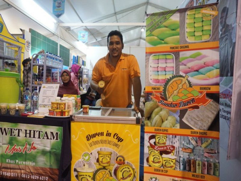 <div dir="auto">Kegiatan Tangerang Expo menjadi sarana Usaha Kecil dan Menengah (UKM) memamerkan produknya. Salah satu produk unik yang ditemui di Tangerang Expo 2018 adalah Duren In Cup.<div dir="auto"><div dir="auto">Makanan yang berbahan dasar durian itu dibuat oleh Dani Nurdiansyah warga Kecamatan Periuk.<div dir="auto"><div dir="auto">Berawal dari usaha duren yang digeluti, ia pun berinovasi menciptakan produk yang memudahkan pecinta duren dalam menikmati buah berkulit duri itu.<div dir="auto"><div dir="auto">Duren In Cup dibuat dari 90 persen duren medan asli 5 persen krimer dan 5 persennya adalah resep rahasianya. Makanan satu ini lebih nikmat disajikan saat kondisi sudah lumer.<div dir="auto"><div dir="auto">Pria yang juga turut bergabung dalam Community UKM Periuk (CUP Bestari) mampu menjual 1000 cup dalam seminggu.Ia memasarkan produknya melalui online serta memasok ke Kafe dan restoran.<div dir="auto"><div dir="auto">Menurutnya meskipun produk sejenis sudah banyak dipasaran namun ia mengklaim produknya memiliki keunggulan rasa dengan lainnya.<div dir="auto"><div dir="auto">"Beda nya ada di bahan baku yang merupakan Duren medan asli dengan tekstur dan rasa yang berbeda dari duren lainnya,"katanya.