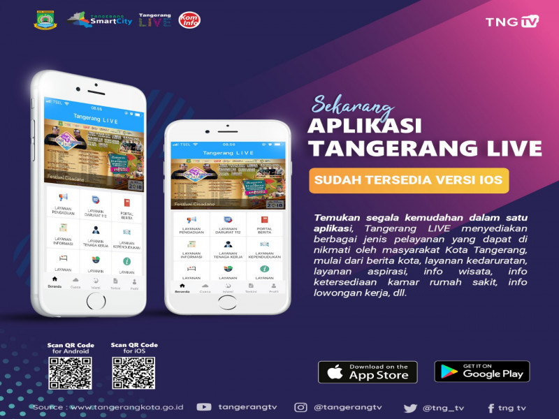 Komunikasi dan Informatika (Diskominfo) Kota Tangerang terus berinovasi dengan mengembangkan aplikasi untuk memudahkan pelayanan. Kali ini, aplikasi Tangerang LIVE sudah tersedia versi iOS.