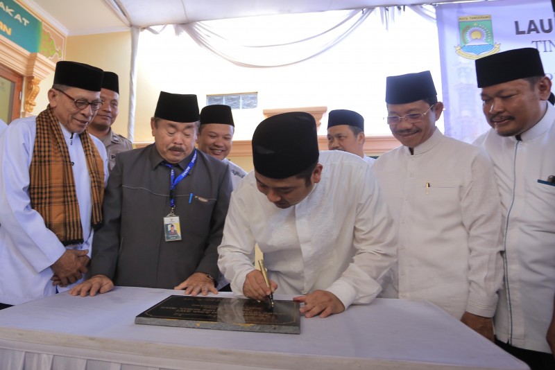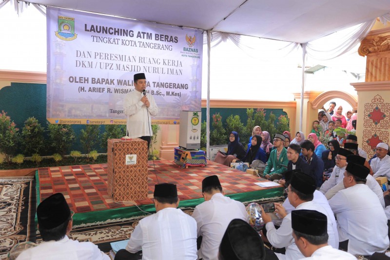 Wali Kota Tangerang Arief R. Wismansyah bersama dengan Pj. Sekda Kota Tangerang Tatang Sutisna dan Ketua Baznas Kota Tangerang Aslie Elhusyairy meresmikan ATM Beras dan Sekretariat UPZ Masjid Nurul Iman yang berada di wilayah Poris Plawad Utara RT 03/05 Kec. Cipondoh, Jum'at (26/7/2019).