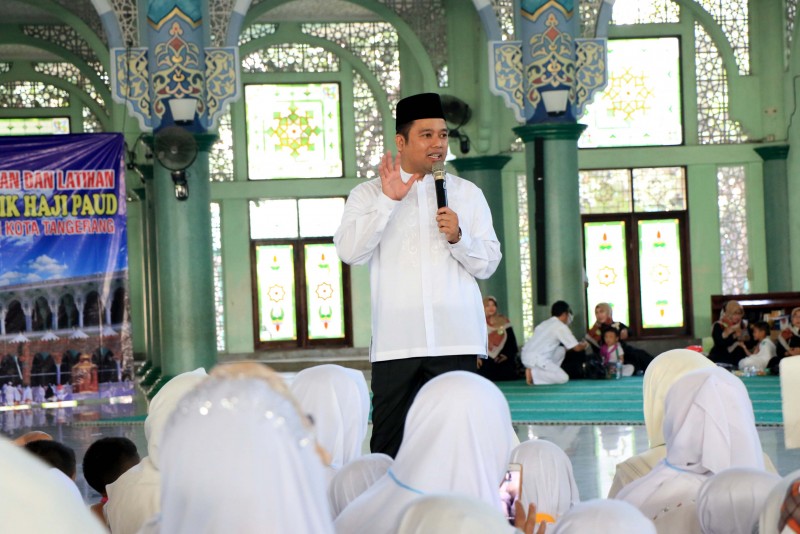 Wali Kota Tangerang, Arief R. Wismansyah membuka acara manasik haji anak - anak PAUD Kota Tangerang yang diinisiasi oleh Himpunan Pendidikan Anak Usia Dini Indonesia Kota Tangerang yang dilaksanakan di Masjid Raya Al Azhom, Tangerang, Sabtu (28/9/19).