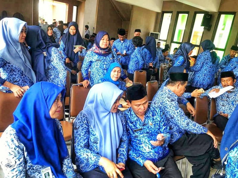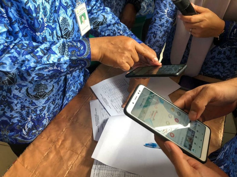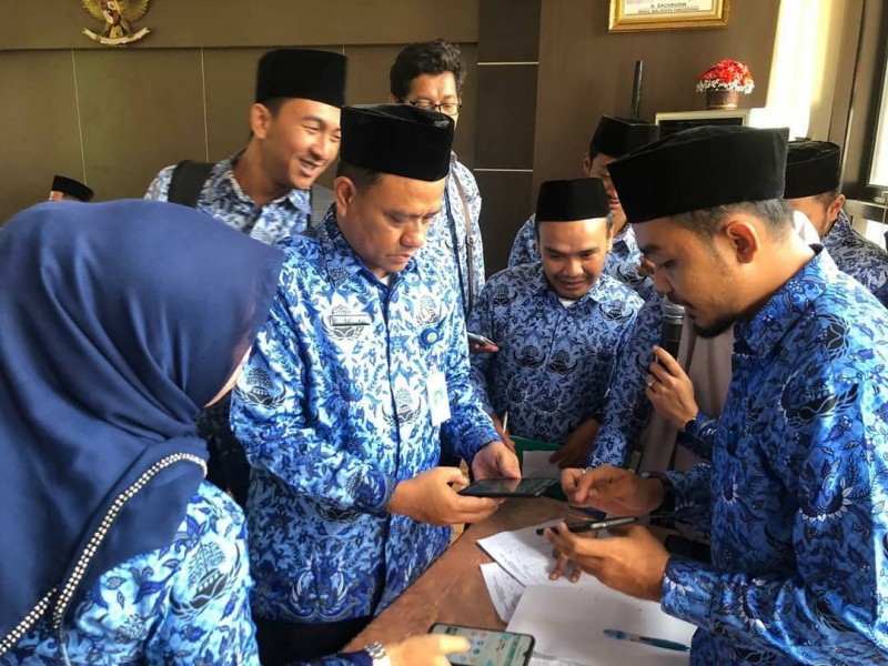 Seluruh pegawai berkumpul di aula guna melakukan pengecekan handphonenya dan memastikan apakah sudah ada apikasi Tangerang Live atau tidak. Jika tidak ada, maka pegawai tersebut harus menginstal dan diwajibkan menggunakan aplikasi tersebut.