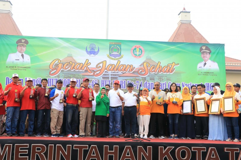 Menyambut HUT PGRI Ke-74 dan HUT KORPRI Ke-48 Tahun 2019, Pemerintah Kota Tangerang menggelar Gerak Jalan Sehat. Gerak Jalan Sehat dihadiri oleh Wali Kota Tangerang H. Arief R Wismansyah dan wakilnya H. Sachrudin serta diikuti ribuan peserta dari seluruh Korps Pegawai Republik Indonesia dan Persatuan Guru Republik Indonesia se-Kota Tangerang serta masyarakat Kota Tangerang.