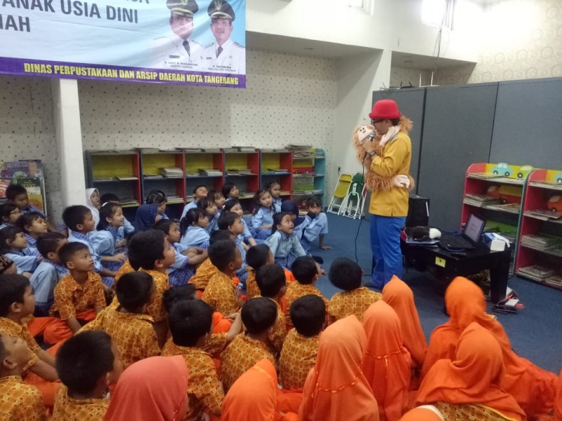 Terhibur mendengar kisah cerita dari pendongeng lucu. Ratusan siswa antusias mengikuti story telling yang digelar Dinas Perpustakaan dan Arsip Daerah (DPAD) Kota Tangerang, di Aula Pepustakaan Umum Kota Tangerang.