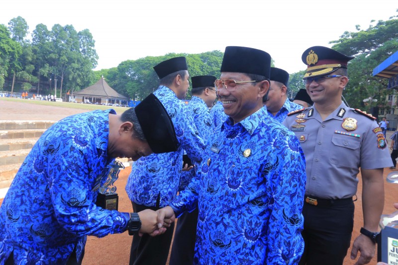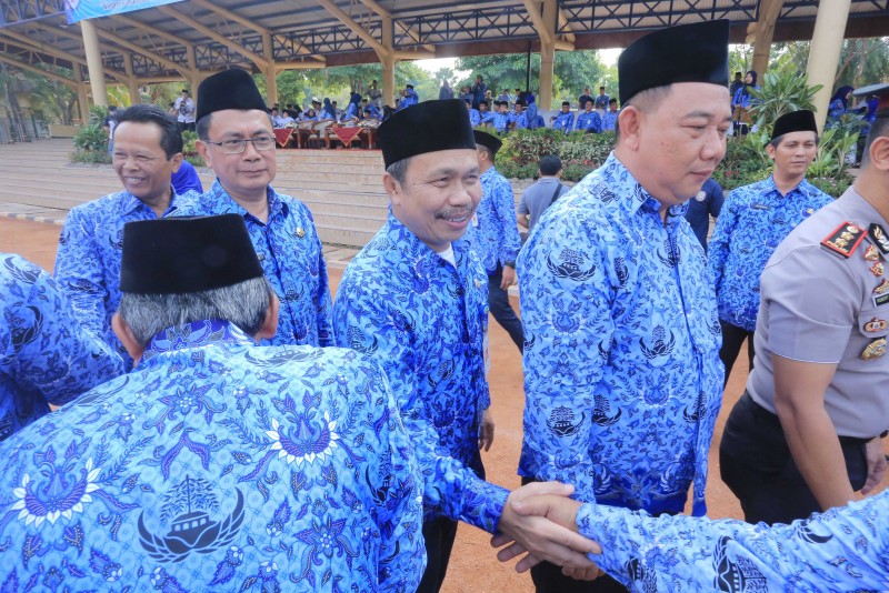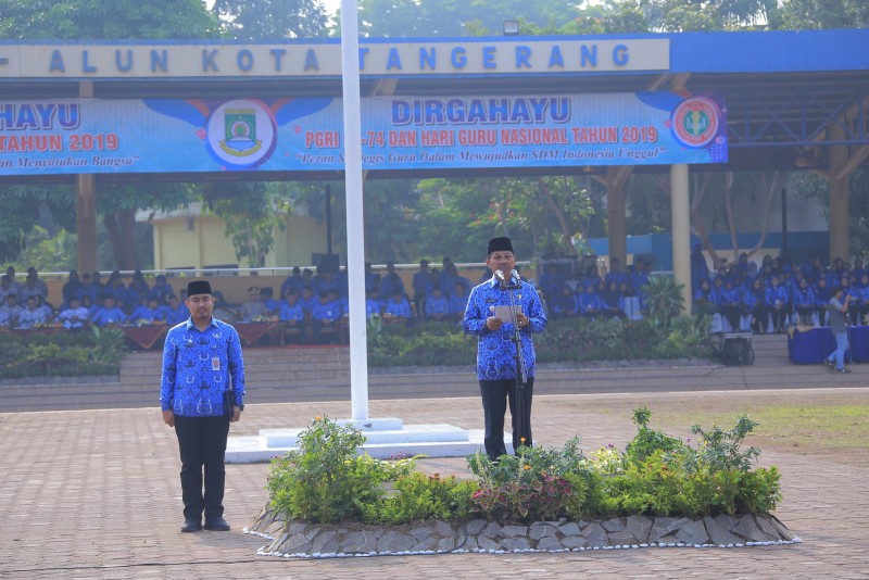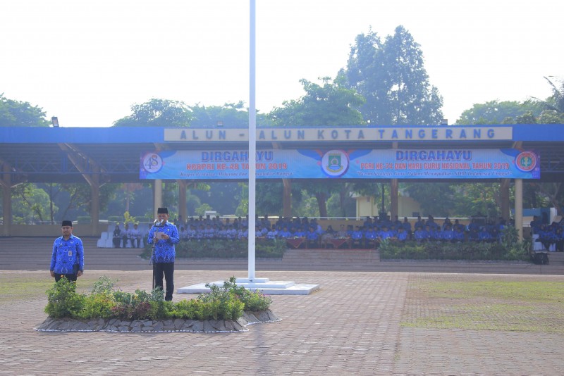 Dalam rangka memperingati HUT Korps Pegawai Republik Indonesia (KORPRI) Ke-48 dan HUT Persatuan Guru Republik Indonesia (PGRI) Ke-78 serta Peringatan Hari Guru Nasional Tingkat Kota Tangerang, Pemerintah Kota Tangerang menggelar upacara yang diikuti oleh seluruh Aparatur Sipil Negara (ASN) Pemkot Tangerang beserta guru di Lapangan Ahmad Yani, Kota Tangerang, Jumat (29/11).
