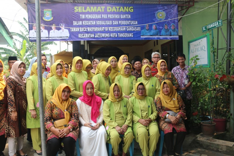 TP PKK Provinsi Banten menggelar sosialisasi dan pembentukan Taman Bacaan Masyarakat (TBM) binaannya, di Kampung KB, RW. 04, Kelurahan Gandasari, Kecamatan Jatiuwung, Kota Tangerang, Kamis (28/11/19).