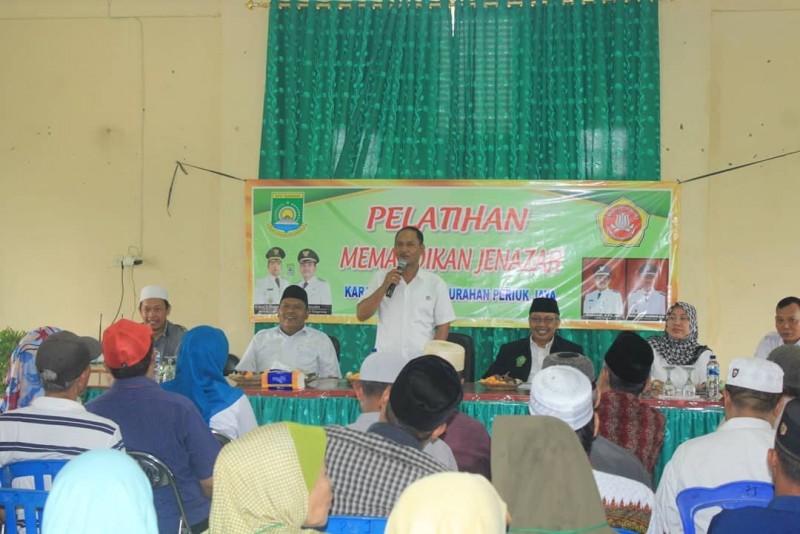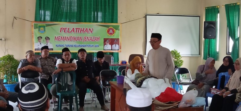 Karang Taruna Kelurahan Periuk Jaya, menggelar pelatihan pemandian jenazah di Aula Kantor Kelurahan Periuk Jaya, Kecamatan Periuk, Kota Tangerang. Pelatihan digelar dua tersebut diikuti 100 peserta yang merupakan amil dan majelis taklim Periuk Jaya.
