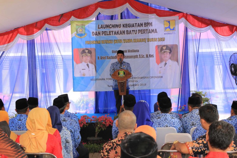 Seperti yang terlihat dikawasan Kelurahan Poris Plawad Indah, Kecamatan Cipondoh Kota Tangerang, Selasa (17/09), Wali Kota Tangerang H. Arief R Wismansyah melakukan Peletakan Batu Pertama dalam program Kota Tanpa Kumuh (Kotaku) Tahun 2019 dan Launching Kegiatan BPM (Bantuan Pemerintah untuk Masyarakat).