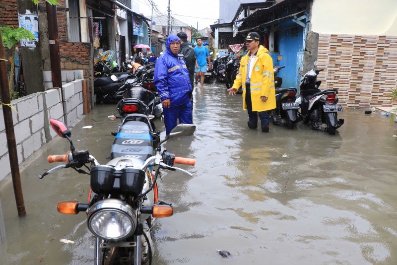 Wakil Wali Kota Tangerang H. Sachrudin meninjau lokasi yang terdampak banjir di wilayah Kelurahan Petir, Cipondoh, Rabu (1/1) yang disebabkan tingginya curah hujan serta luapan air Kali Angke.