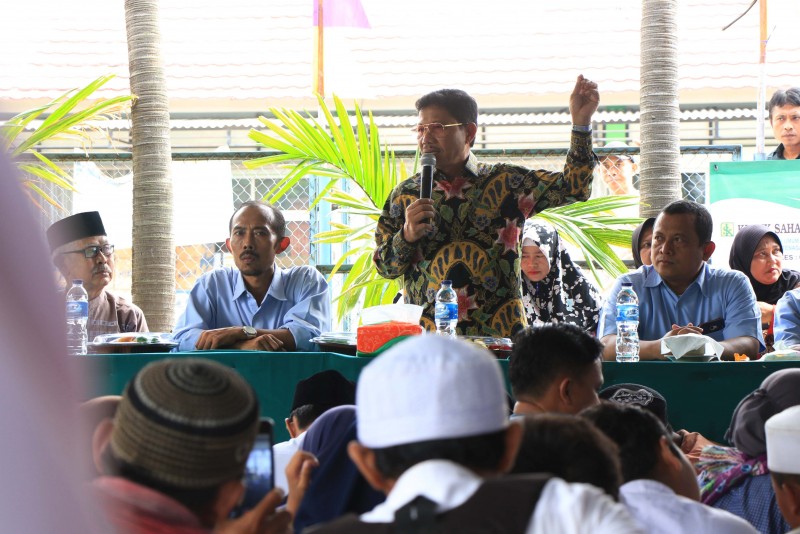 "Adik-adik dan ibu-ibu doain agar perusahan ini tambah maju, supaya perhatiannya kepada lingkungan sekitar semakin besar," tambah Sachrudin.