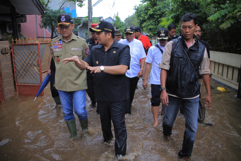 Kendati dengan kondisi cuaca yang gerimis lebat, Walikota bersama Mensos tak berhenti untuk memantau area Perumahan Ciledug Indah yang mulai surut dari banjir.