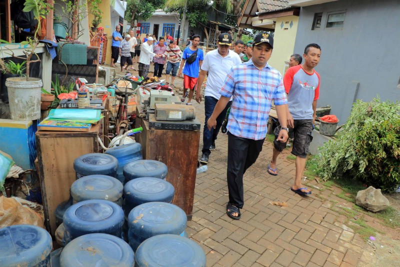 Wali Kota Tangerang H. Arief R. Wismansyah bersama dengan jajaran Pemkot Tangerang meninjau lokasi Perumahan Pondok Bahar, Kecamatan Karangtengah, Sabtu (4/1) yang terdampak banjir akibat luapan Kali Angke beberapa waktu lalu.