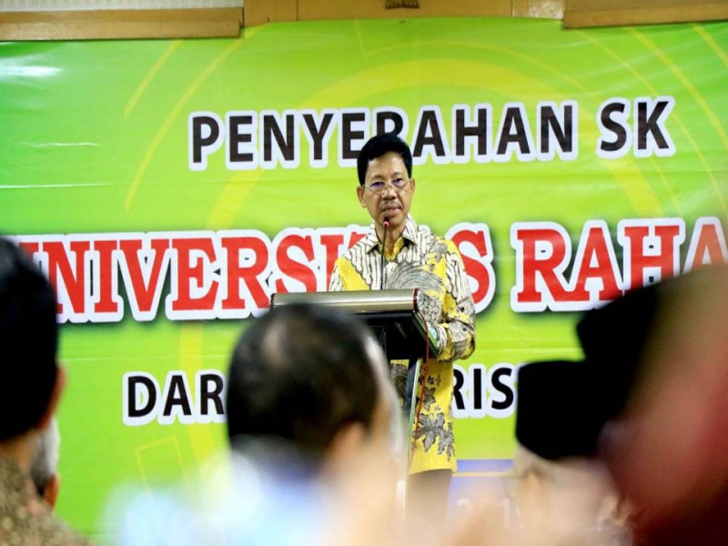 "Yang pertama saya mengucapkan selamat kepada Universitas Raharja yang baru saja mendapatkan Surat Keputusan (SK) dari Kemenristekdikti Republik Indonesia," ucap Sachrudin.