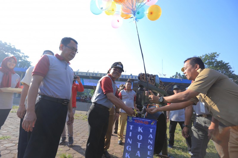 Wakil Wali Kota Tangerang H. Sachrudin didampingi Sekda Kota Tangerang H. Dadi Budaeri membuka secara langsung pelaksanaan Olimpiade Olahraga Siswa Nasional (O2SN) Jenjang Sekolah Dasar (SD) 2019 Tingkat Kota Tangerang, Selasa (18/6/2019).
