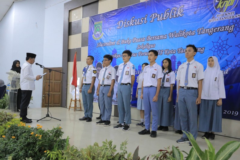 Wakil Wali Kota Tangerang H. Sachrudin menghadiri acara Diskusi Publik Silaturahmi dan Buka Puasa Bersama sekaligus Pelantikan Pengurus Forum OSIS Kota Tangerang Periode 2019-2020.