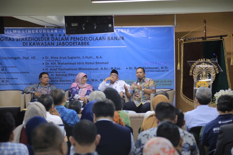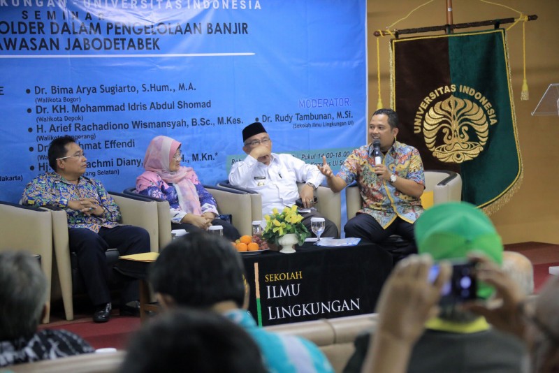 Wali Kota Tangerang, Arief Wismansyah, didapuk menjadi salah satu narasumber dalam Seminar "Sinergitas Stakeholder Dalam Pengelolaan Banjir di Kawasan Jabodetabek" yang diselenggarakan oleh Sekolah Ilmu Lingkungan Universitas Indonesia, bertempat di Gedung IASTH Lt. 3, Kampus UI Salemba, Jakarta Pusat, Rabu (15/1).