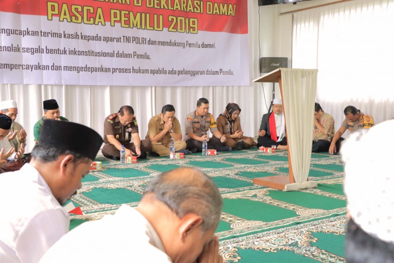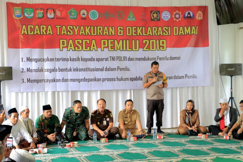 Wali Kota Tangerang H. Arief R Wismansyah hadir dalam acara Tasyakuran serta Deklarasi Damai pasca Pemilu 2019 yang digagas oleh Polres Metro Tangerang Kota di RM. Remaja Kuring Kota Tangerang, Jatiuwung, Selasa (23/4/2019).